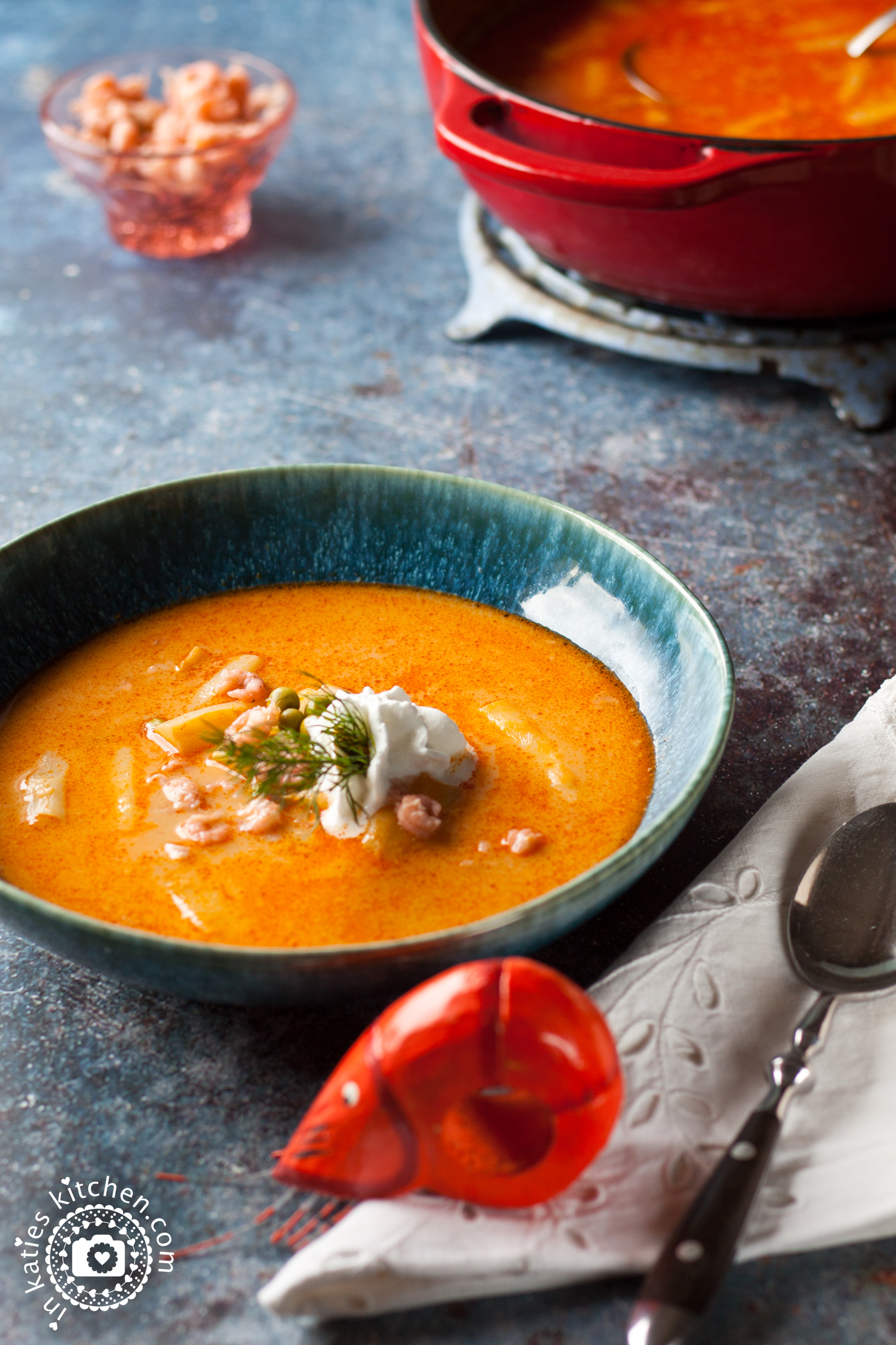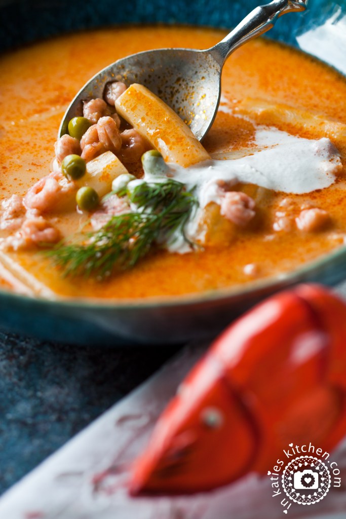 Spätestens bei diesem Rezept aus Oma Kätes Kochbuch wird klar, Oma stammt aus dem hohen Norden. Genauer gesagt, aus Ramstedt, einem kleinen Dorf bei Husum. Hier werden die Nordseekrabben selbstverständlich direkt vom Kutter geholt und natürlich selber gepult. Die Schalen kommen mit Wasser bedeckt in einen Topf und werden ausgekocht. Nachdem sie noch etwas durchgezogen sind, bildet ihr Sud neben einer selbst gekochter Knochenbrühe die Basis für Omas Krabbensuppe.