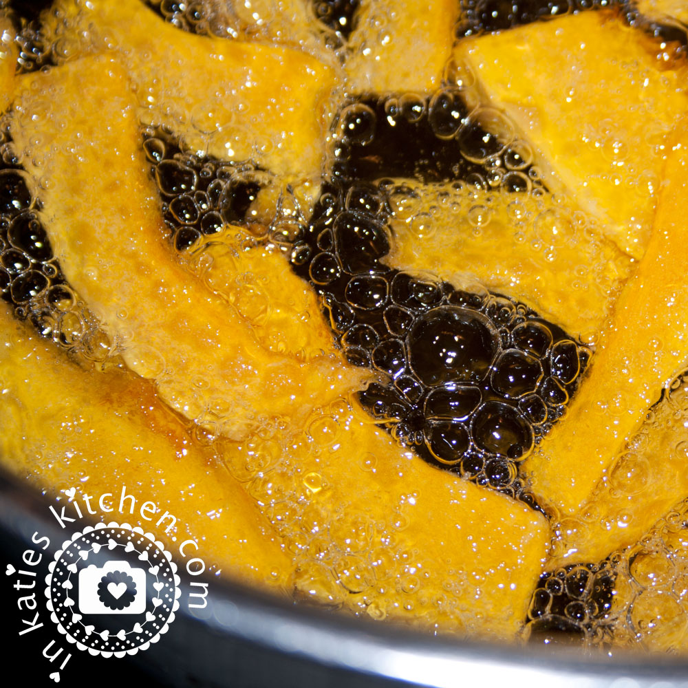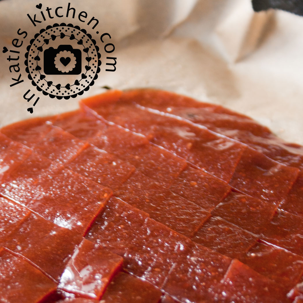 und lässt alles leicht kochen bis der Zucker sich vollständig aufgelöst hat. Die Masse auf ein mit Backpapier ausgelegtem Bachblech ca. 1 cm dick verstreichen und bei 100°C mit leicht geöffneter Ofentür (Kochlöffel dazwischen klemmen) mindestens 3 Stunden trocknen lassen.