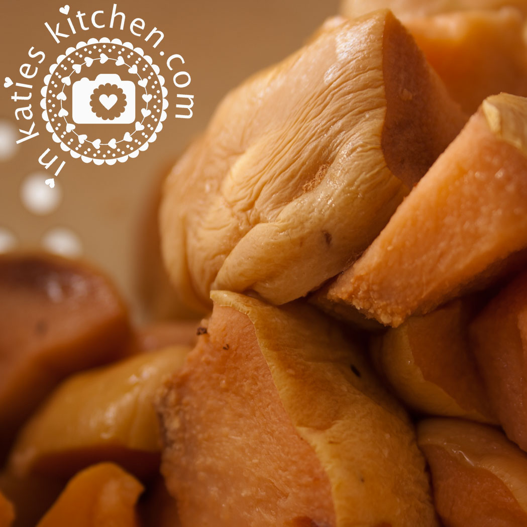 Übrig bleiben die ausgekochten Quittenstücke die sich nun wo sie weich sind gut weiter verarbeiten lassen.