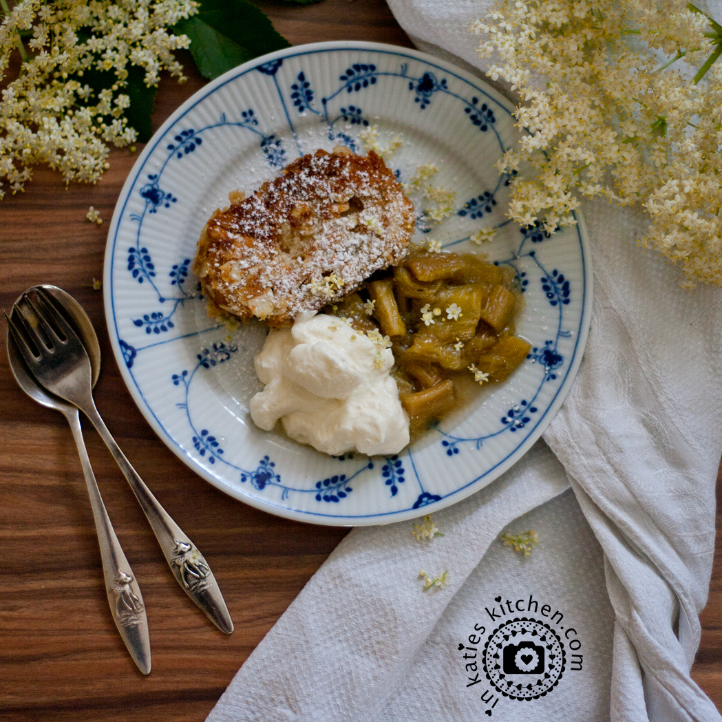 Arme Ritter mit Rhabarber-Holunderblüten-Kompott