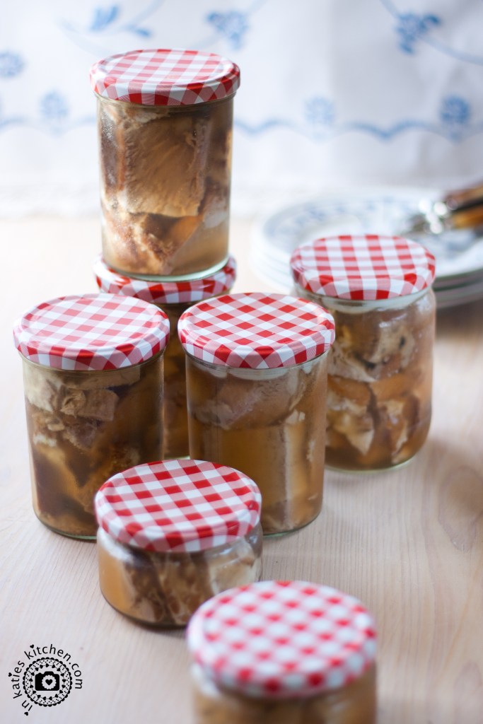 Ich hab’ mal gleich einen kleinen Vorrat angelegt 😂 der Sommer ist noch lang! Es lohnt sich auf jeden Fall ein paar Gläser davon einzukochen, denn das Sauerfleisch hält sich so Monate (wenn es nicht vorher ganz schnell jemand aufisst) und man hat nur einmal Arbeit damit.