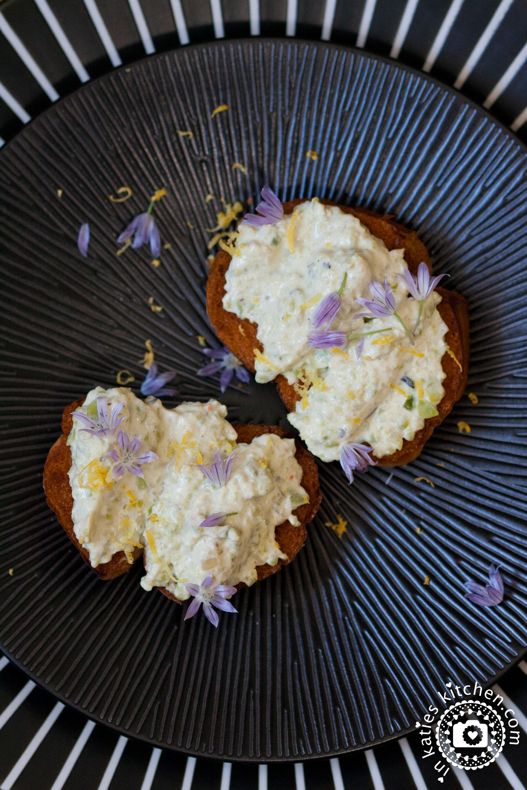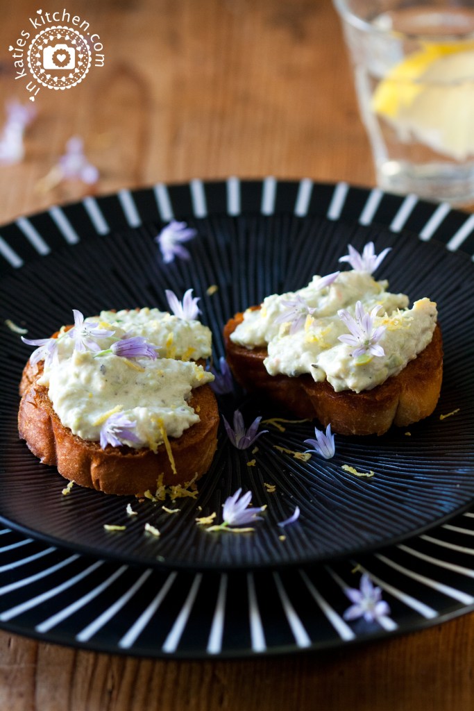 Die Dicke-Bohnen-Crème großzügig auf gerösteten Brotscheiben verstreichen und etwas frisch abgeriebene Zitronenschale darüber verteilen. Ein paar Schnittlauchblüten machen das Bild perfekt! Das Auge isst ja schließlich mit.