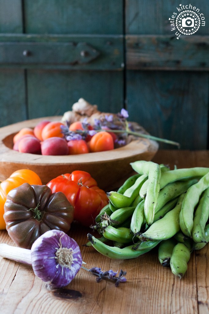 Als ich das letzte Mal in Frankreich war, habe ich natürlich nicht nur den Aprikosen nicht widerstehen können, sondern auch nicht den herrlich bunten Ochsenherztomaten, den frischen Dicken Bohnen, dem frischen Knoblauch und, und, und …