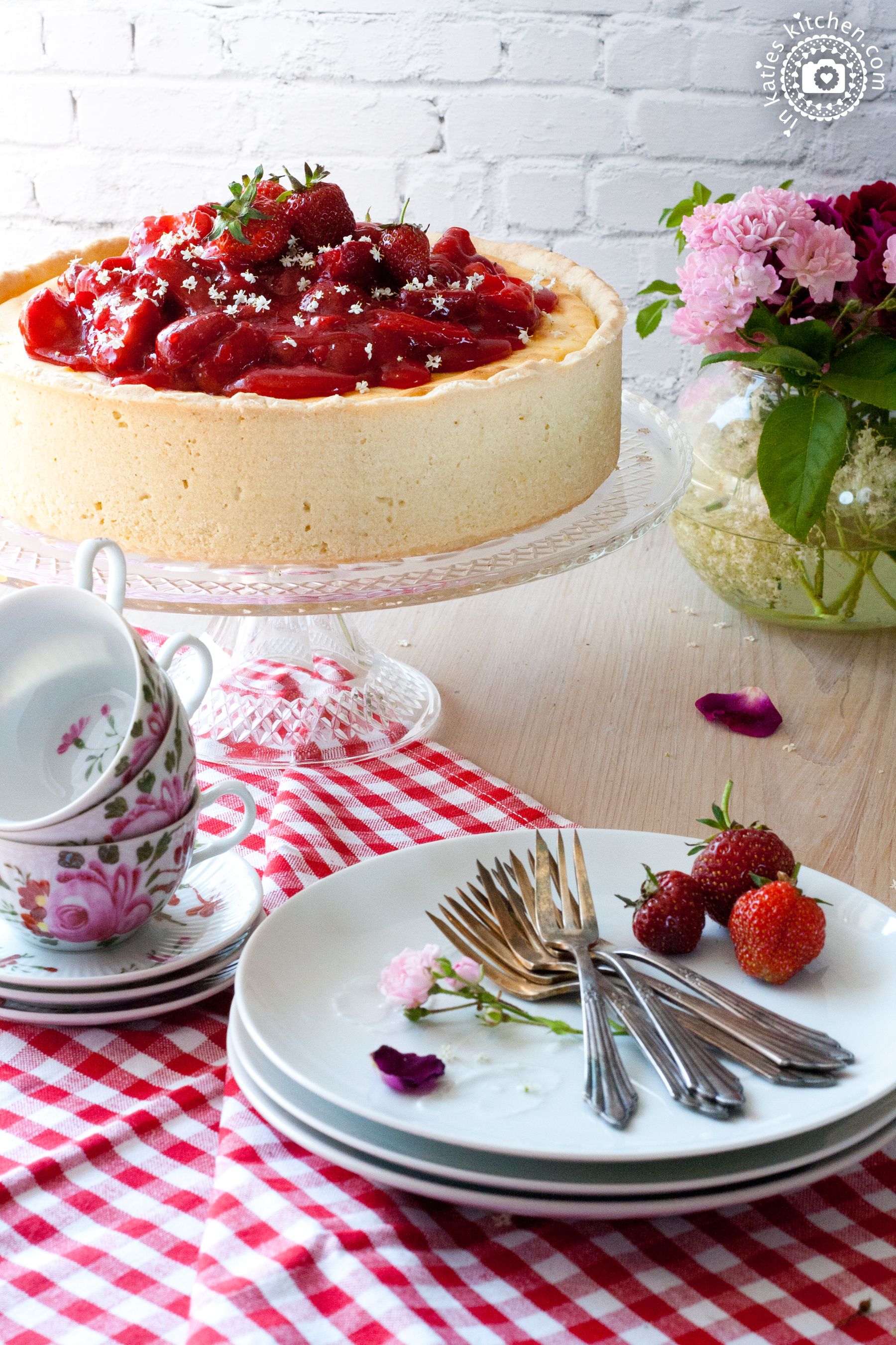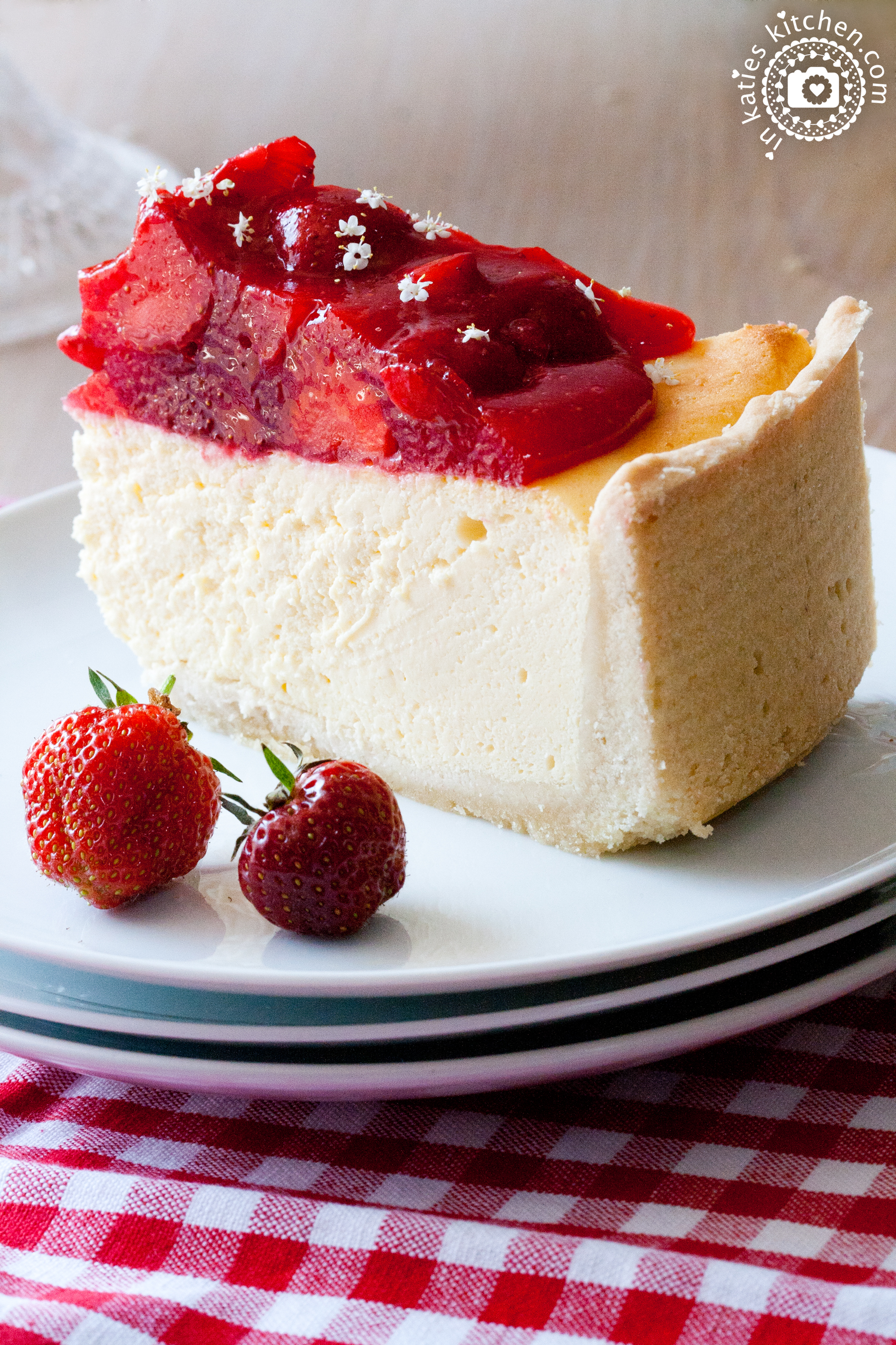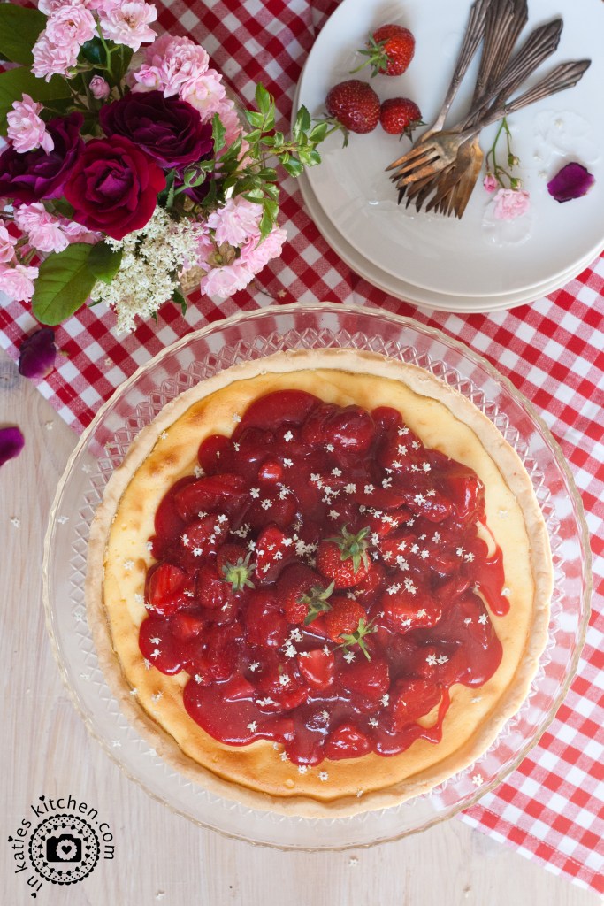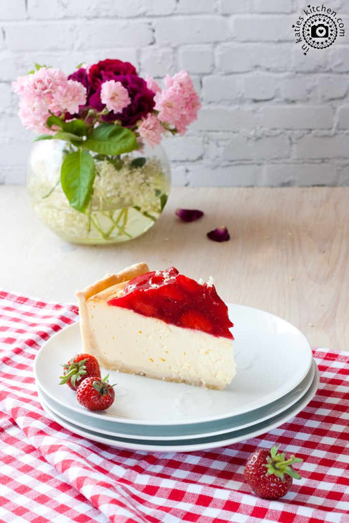 Käsekuchen an sich ist ja so schon sensationell lecker, aber im Sommer getoppt mit frischen Erdbeeren schmeckt er einfach himmlisch. Und weil das so ist, verrate ich Euch hier heute mein Rezept und hoffe, euch zum Nachbacken anzuregen.