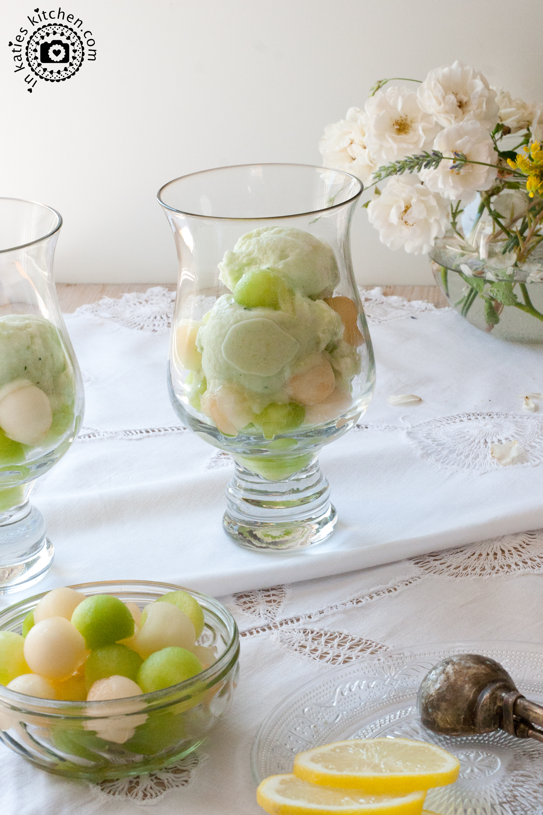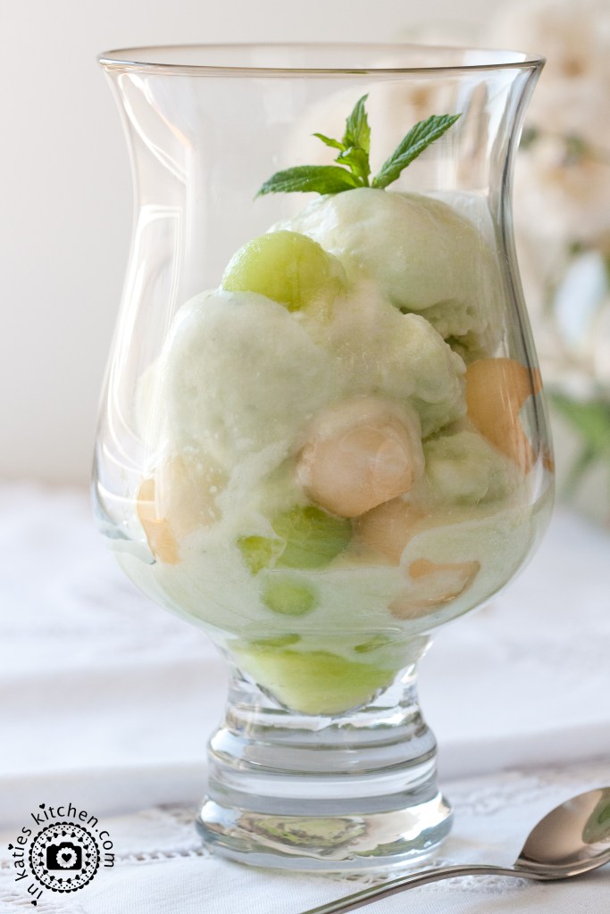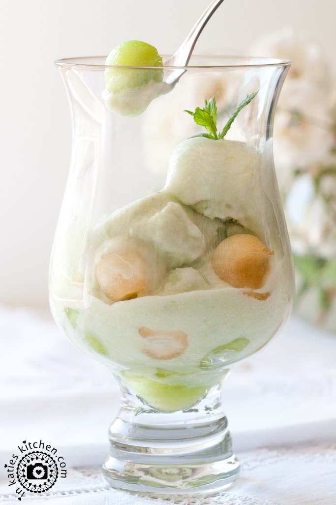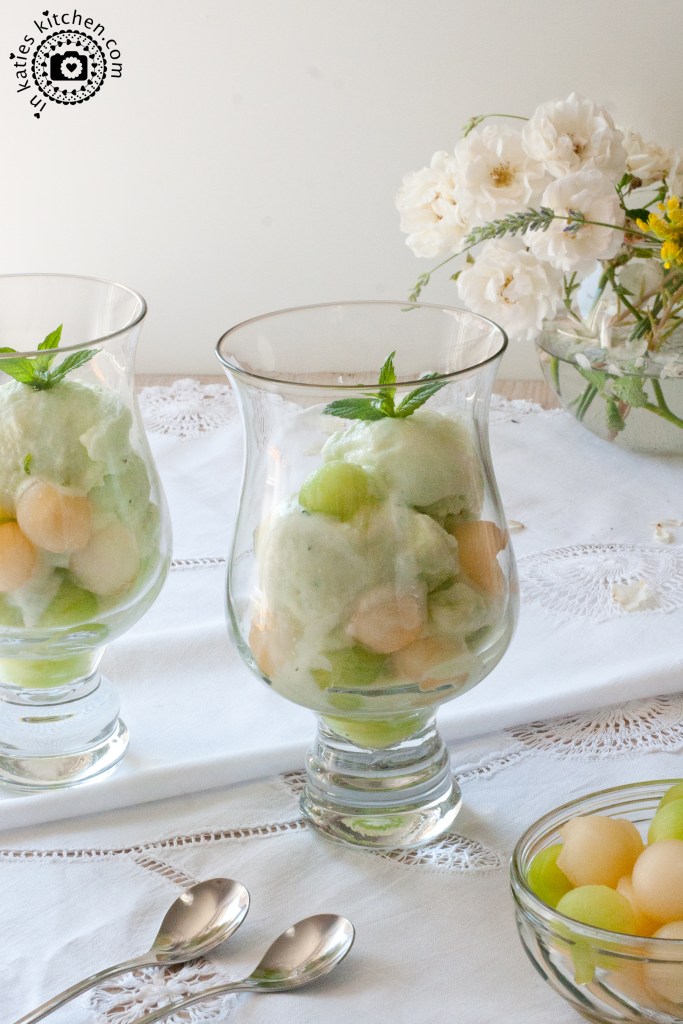 Jetzt die Eiscreme mit Melone und einem kleinen Zweig Minze anrichten und ab nach draußen mit dem süßen Becherchen! Lasst es Euch schmecken und genießt den Sommer! ☀️