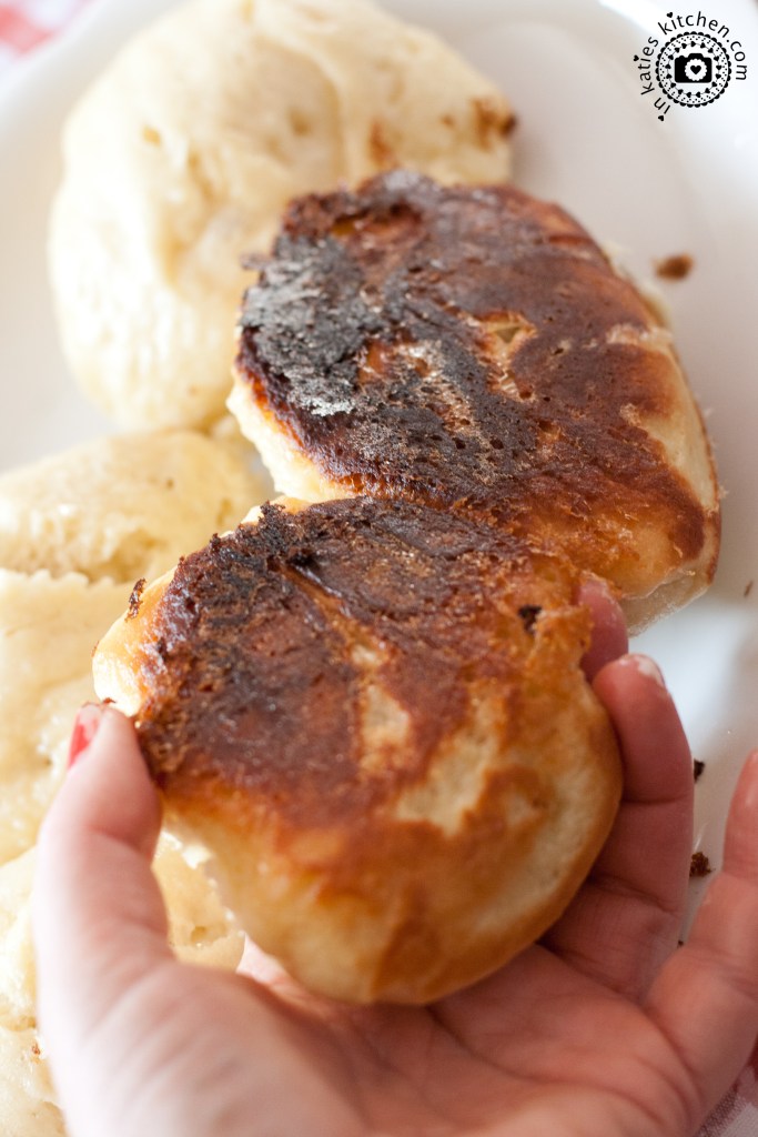 Mit einem bemehlten Löffel runde Küchlein vom Teig abstechen und auf ein mit Mehl bestäubtes Brett legen. Die Teiglinge nochmals etwa 30 Minuten gehen lassen.