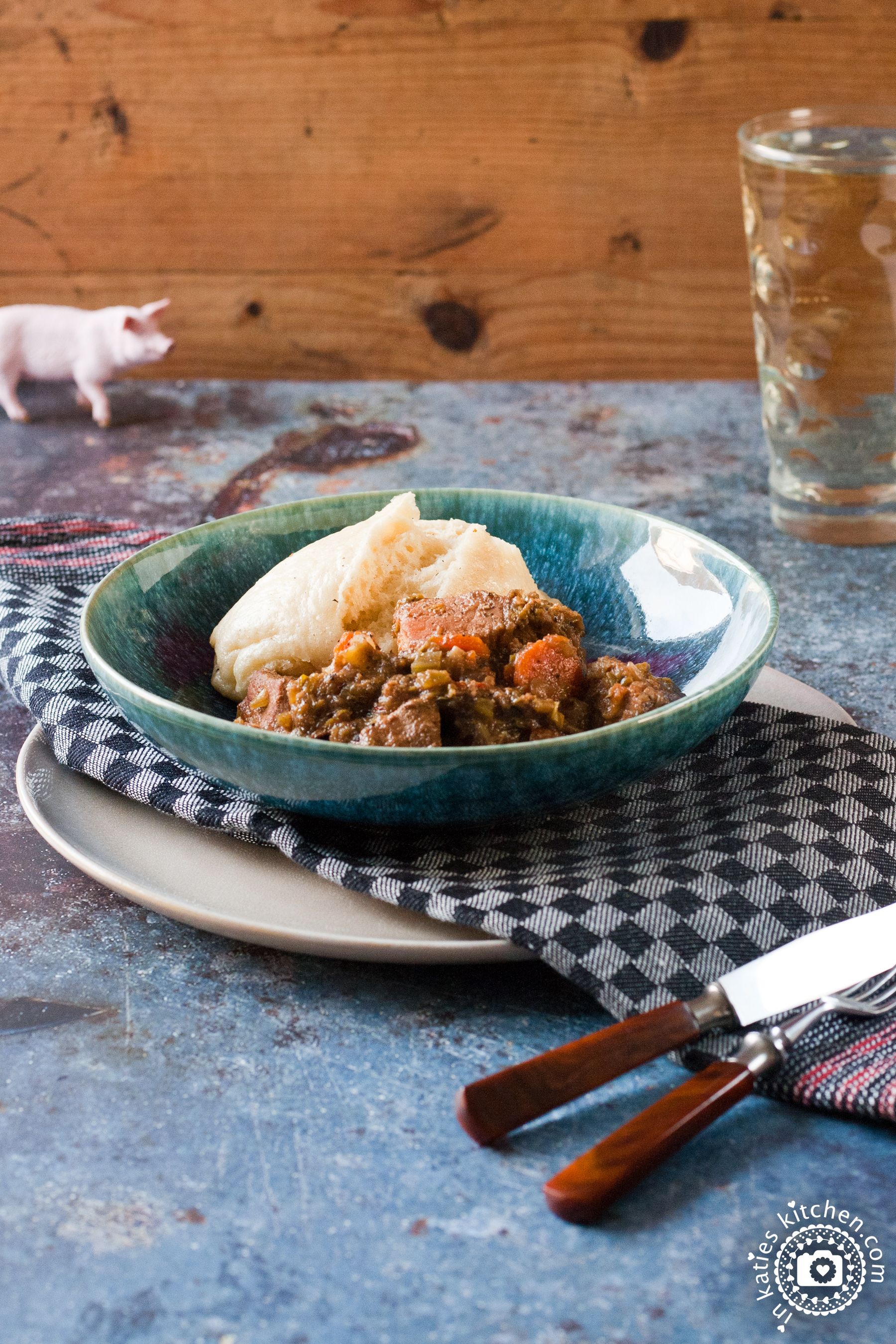 Das heißt, ich bin in diesem Jahr seit 30 Jahren hier und dachte mir, ich zeig’ Euch mal, dass ich auch mittlerweile ein bisschen pfälzisch kann! Zumindest kochen! 🤣 So wird’s heute richtig heftig deftig. Das Wetter spielt auch mit, ein guter Tag für Schweinepfeffer mit Dampfnudeln. Das Dampfnudel-Rezept ist selbstverständlich ein Familienrezept und kommt von unserer lieben Oma Christa. Den Schweinepfeffer habe ich nach dem studieren diverser Pfälzer Rezepte selbst zusammengebraut. Kurzzeitig hatte ich allerdings überlegt, süße Dampfnudeln mit Vanillesoße zu machen und diese vor dem Ausbacken in der Pfanne mit Kirschen zu füllen…aaaaber nachdem man mir mehrfach versichert hat, dass man dafür garantiert in die Hölle kommt, habe ich mich lieber umentschieden. 😇