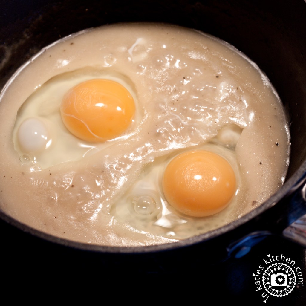 Die zweite Möglichkeit wäre, einfach abgepellte gekochte Eier in die Sauce zu geben. Ist beides lecker! 😊