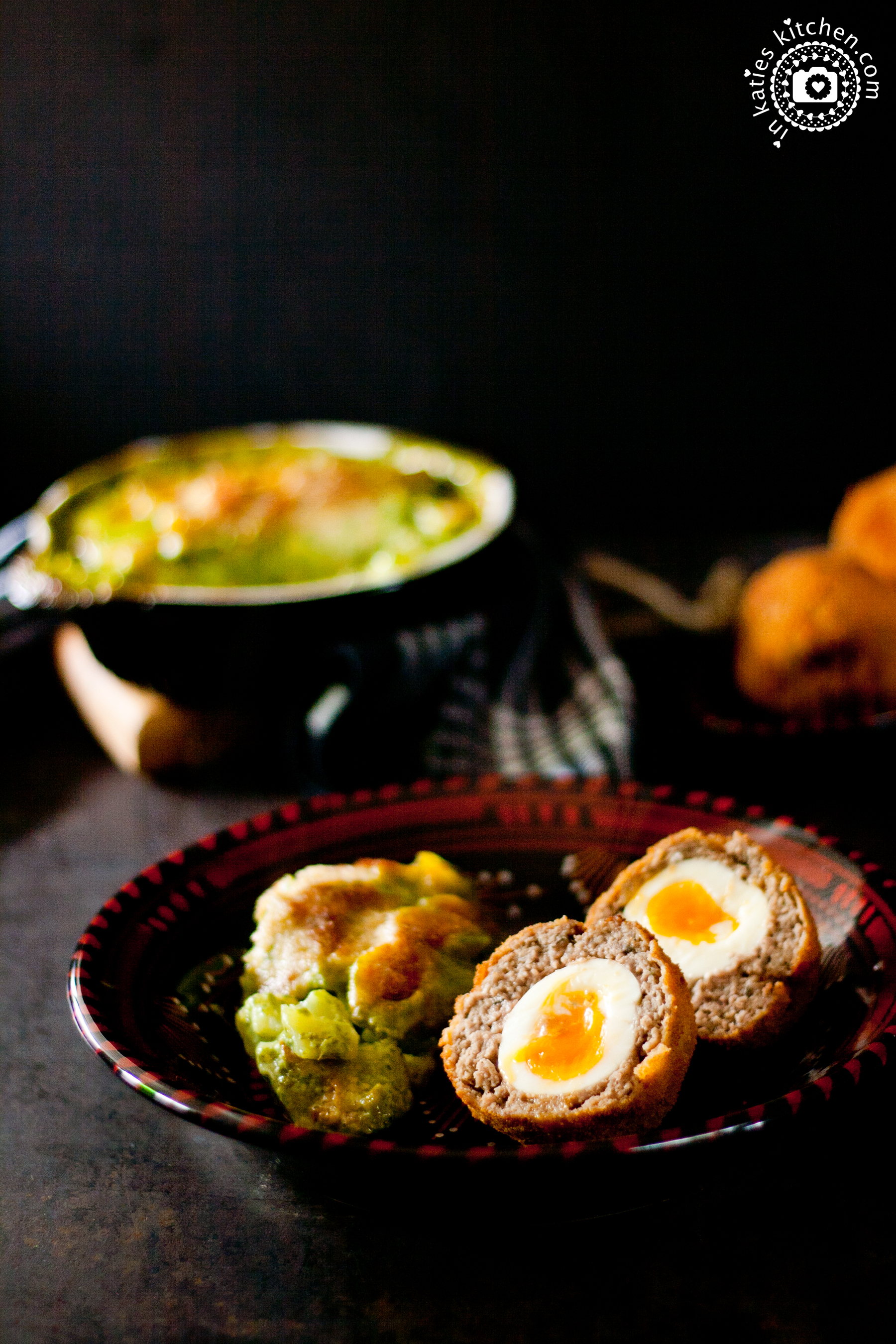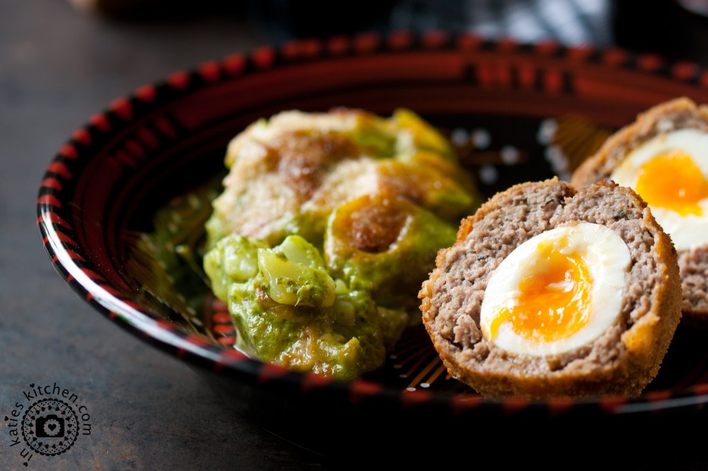 Heute stehen frische Frühlingskräuter auf der Speisekarte. Es gibt Kartoffelgratin mit Bärlauch und dazu Schottische Eier. Hierfür können letzte übrig gebliebene Ostereier Verwendung finden. Oder man macht, so wie ich, einfach neue – am liebsten weichgekocht.
