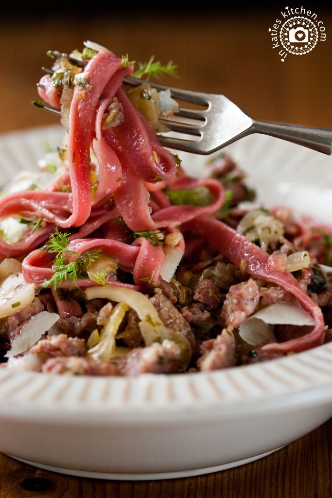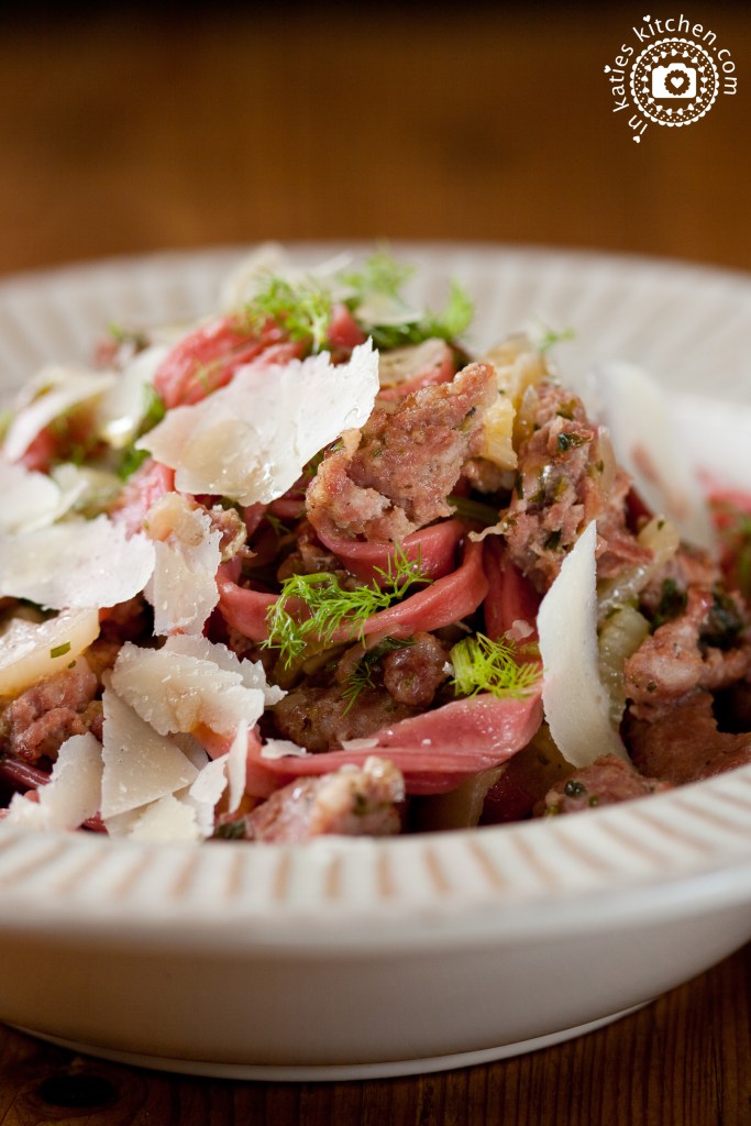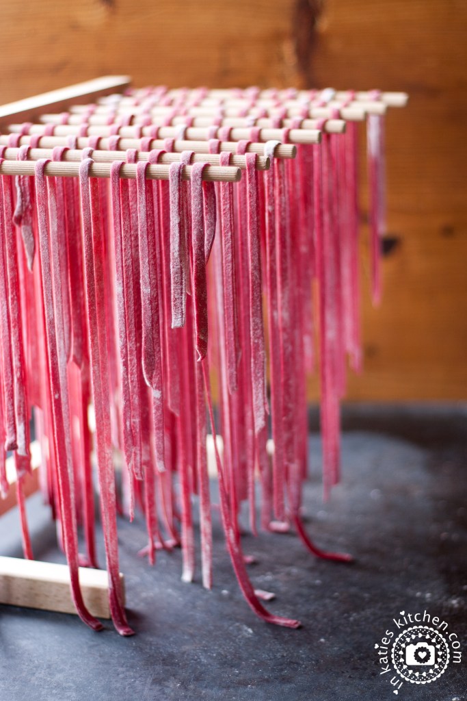Was ich an der italienischen Küche am meisten liebe, ist ihre Einfachheit. Wenige Zutaten und zack – lecker! Ein bisschen Olivenöl, etwas Gemüse, Knoblauch, Kräuter, ein ordentlicher Schuss Wein, Salz, Pfeffer, Zitrone und man hat eine prima Pastasauce. Und weil das alles so fix geht, habe ich heute die gewonnene Zeit genutzt und meine Pasta selber gemacht. Pretty in Pink! 😉