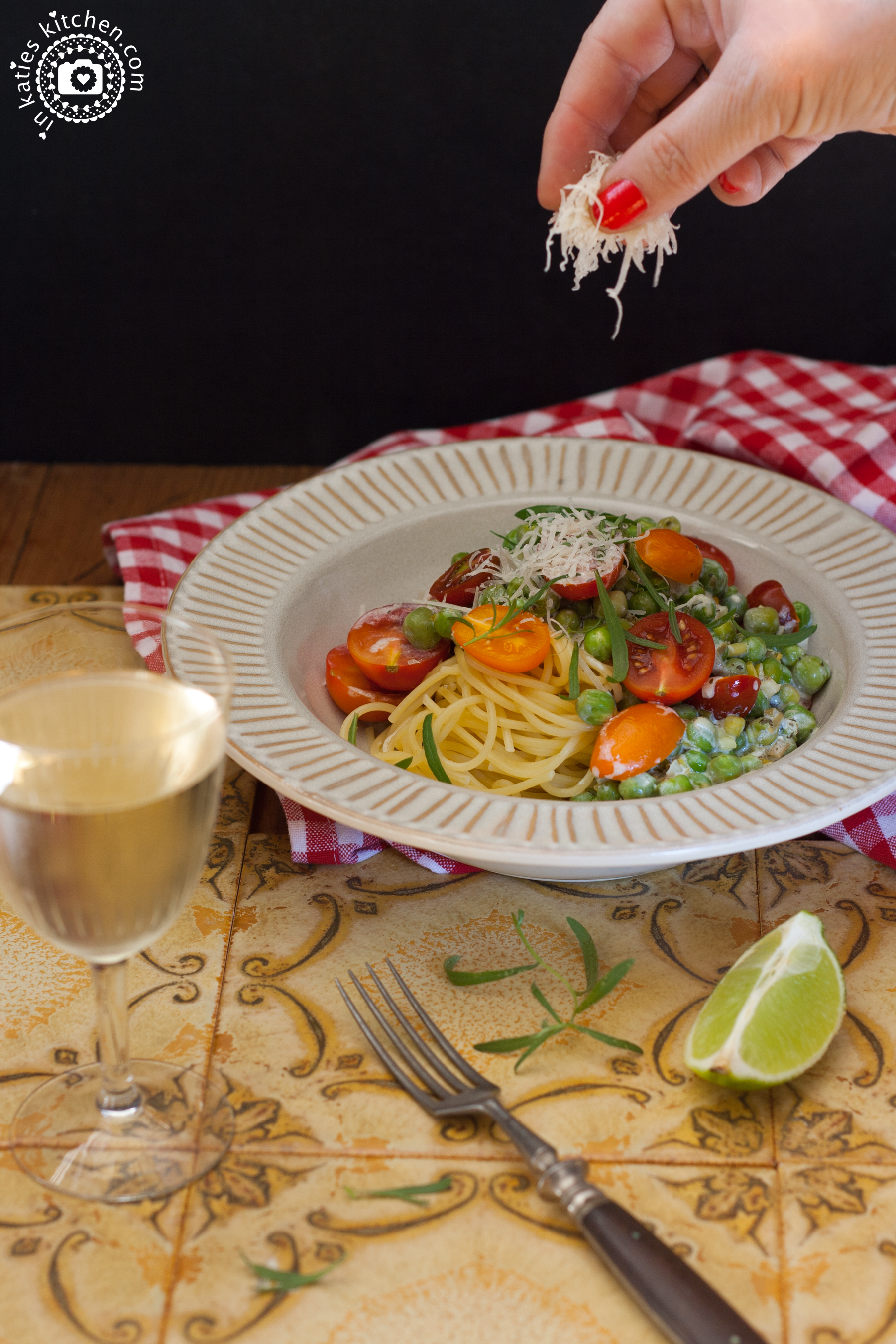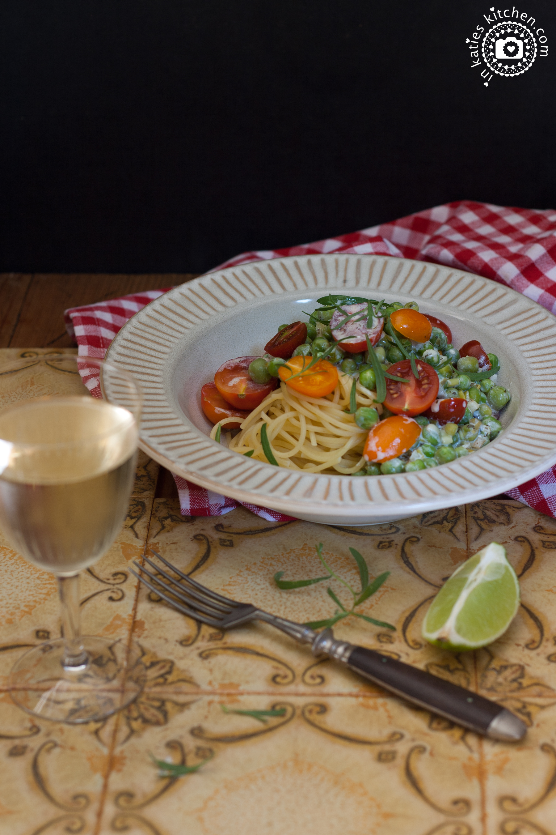 Zusammen mit selbst geernteten Cocktailtomaten und frischem Estragon aus meinem kleinen Gärtchen wird daraus eine schnell gezauberte, sommerliche Gemüsepasta.