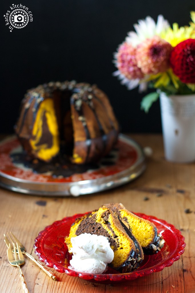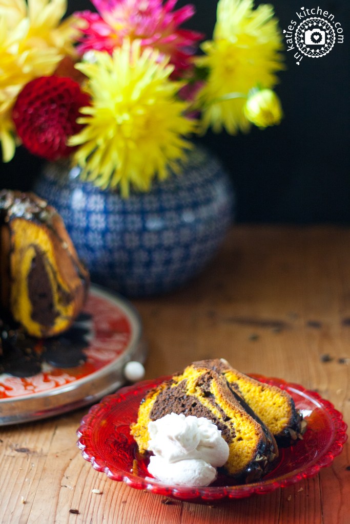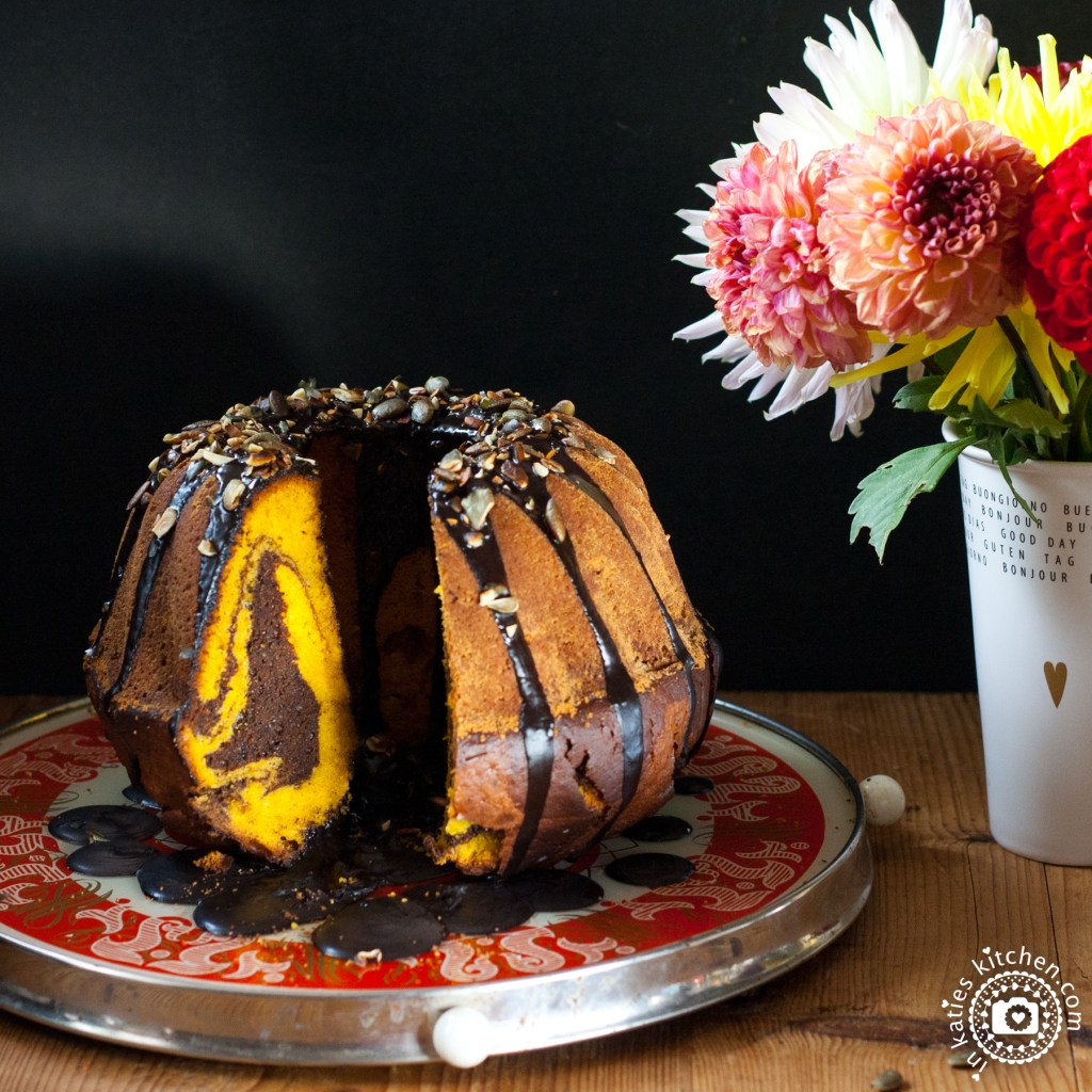 Tja, was soll ich sagen? Es ist noch Kürbis da! Da die Kürbisflut auch so schnell nicht abebben wird, kommt das leuchtende Herbstgemüse bei mir zur Zeit einfach überall rein…ja, auch in den Kuchen 😉.